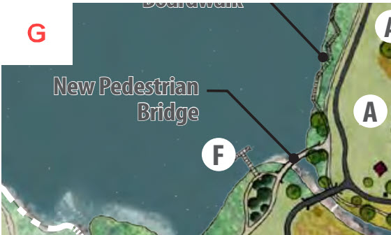 G) Lake Hiawatha pedestrian-only bridge over Minnehaha Creek (separating bike ped traffic where right now the visibility is terrible, bikes are traveling at high speeds due to the hill, and pedestrians are not walking in the designated pedestrian lane)